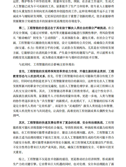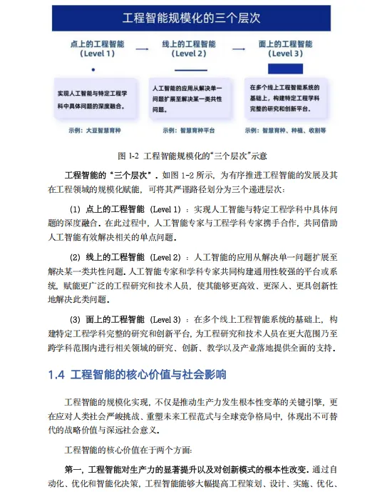 面对工程领域固有的专业壁垒、可靠性严苛要求及系统协同挑战,白皮书倡导"点-线-面一体化、产学研一体化、人-模型-系统一体化"三大方法论,强调工程智能不是取代人类,而是构建人机"共生智能"——让AI承担海量计算与逻辑推演,人类专注于价值判断与创造性工作。展望未来,工程智能将从当前的知识问答工具,演进为具备物理规律理解能力的工程推演决策系统,成为驱动新质生产力、赋能国家重大战略工程、重塑全球工程产业格局的核心引擎。