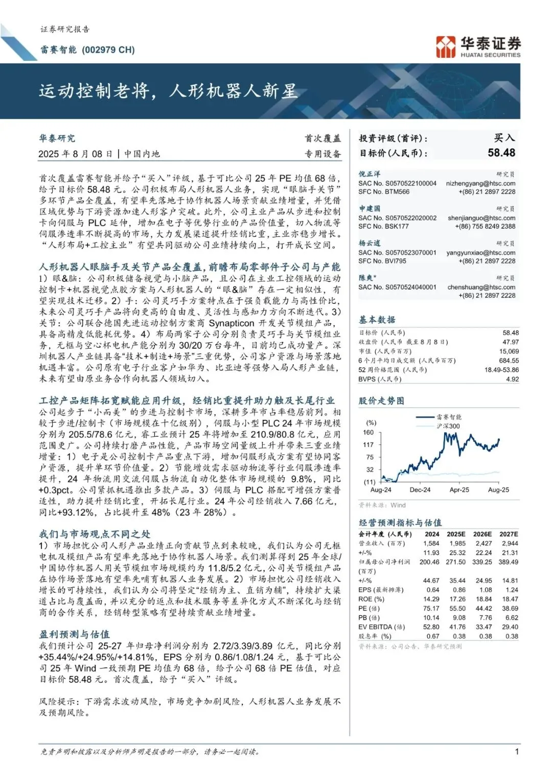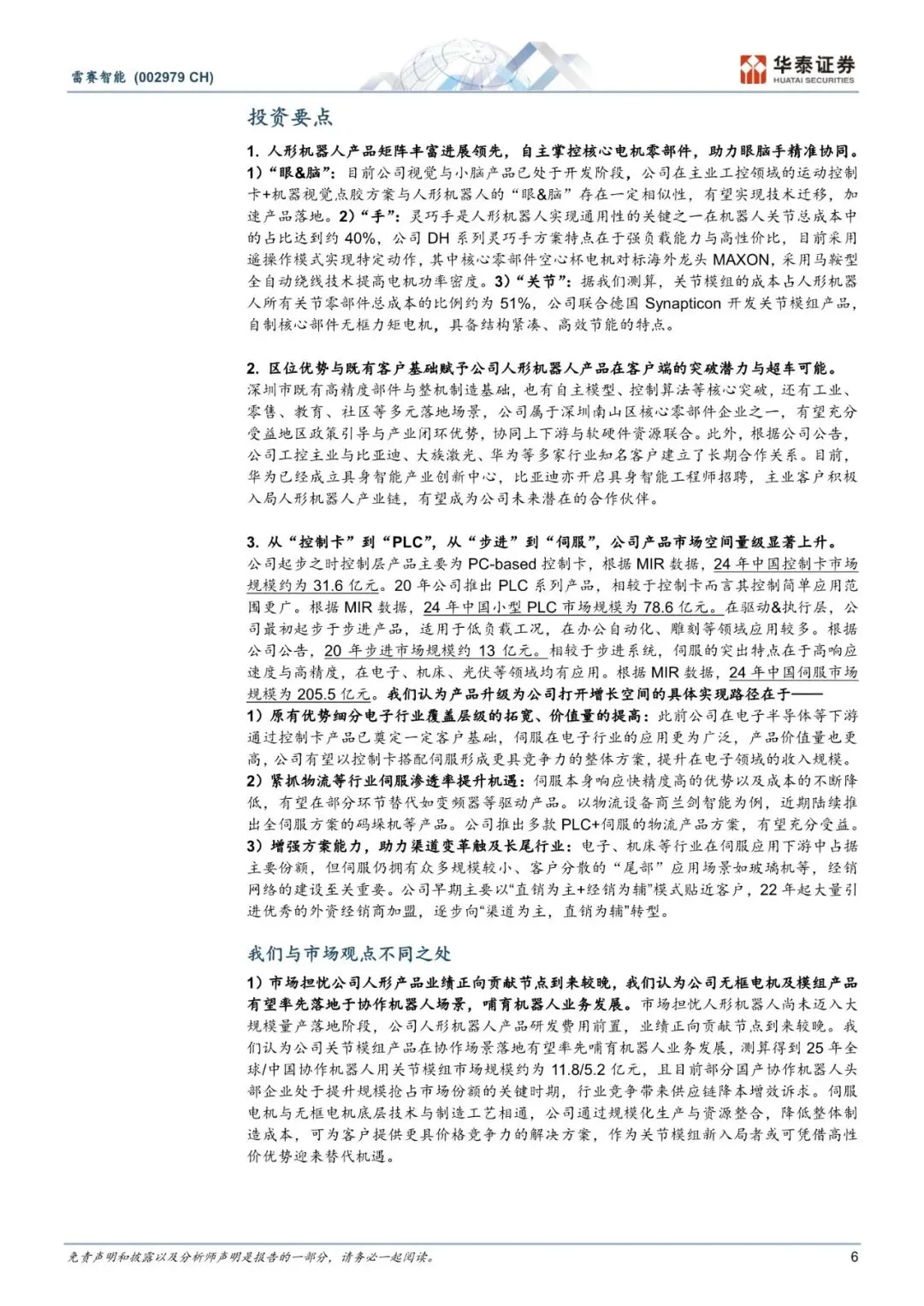 公司积极布局人形机器人业务,实现“眼脑手关节”多环节产品全覆盖,有望率先落地于协作机器人场景贡献业绩增量,并凭借区域优势与下游资源加速人形客户突破。此外,公司主业产品从步进和控制卡向伺服与PLC延伸,增加在电子等优势行业的产品价值量,切入物流等伺服渗透率不断提高的市场,大力发展渠道提升经销比重,主业亦稳步增长。“人形布局+工控主业”有望共同驱动公司业绩持续向上,打开成长空间。