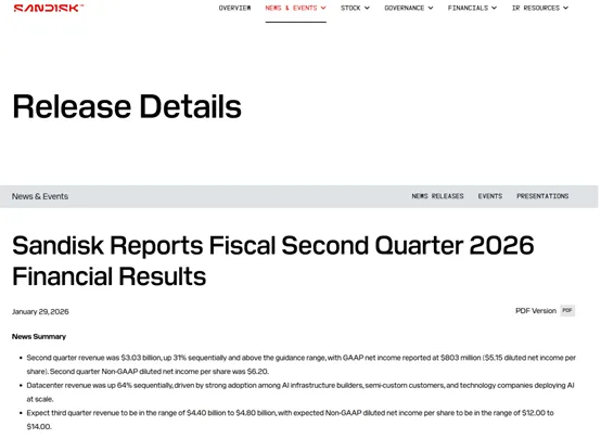 闪迪CEO大卫·格克勒指出,公司通过优化产品结构、加速企业级SSD部署,精准匹配了AI持续扩张带来的需求,这种结构性调整正在转化为行业领先的财务表现。