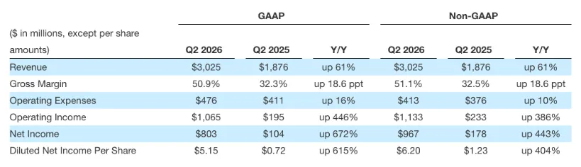 根据美股大数据平台StockFanApp财报信息,闪迪2026财年第二季度表现极为亮眼:
