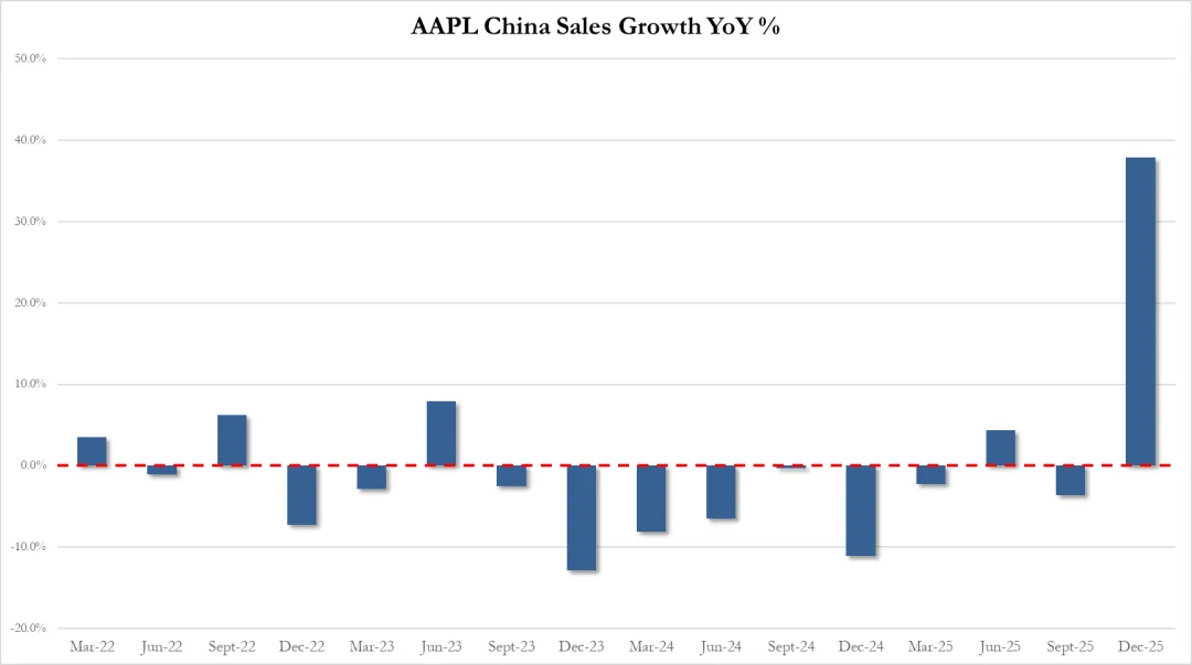 - 大中华区表现:营收达到$255.3亿美元,同比暴增38%!