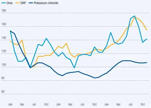 注:尿素、磷酸二铵(DAP)、氯化钾;数据来源为联合国贸发会议(UNCTAD)