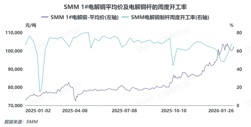2025年已收官,全年精铜杆行业随铜价走势持续震荡,行业运行节奏反复波动。回顾这一年,精铜杆企业开工表现呈现怎样的特征?市场对于2026年行业又有着怎样的展望?