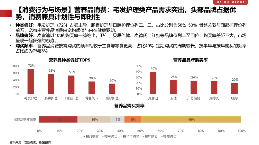 第二,营养品赛道虽在当前结构中占比有限,但随着科学养宠理念普及,其功能深化与主食化趋势愈发清晰。通过将肠胃调理、毛发护理、免疫支持等功能嵌入高频主粮或日常喂养场景,既有望提升客单价与复购率,也为品牌构建长期用户关系提供新抓手。
