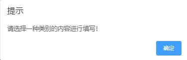 该页面必须选择其中的一个类型进行填写,否则弹出提示“请选择一种类别的内容进行填写!”页面如下:
