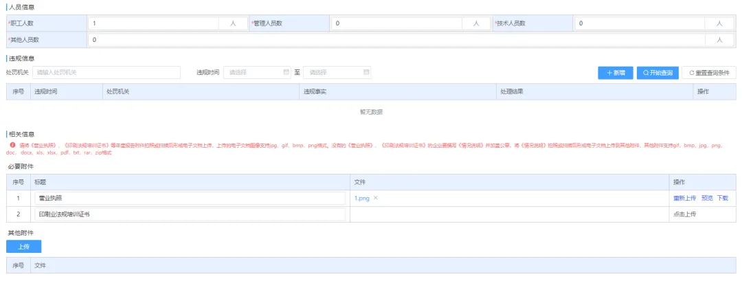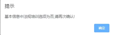 印刷法规培训证书需要在基本信息法规培训选项中选择“是”才需上传,否则出现如下提示:
