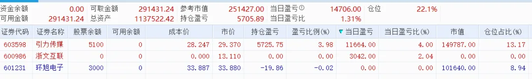 今天ai已经算是抗跌了,昨天炸板的引力,今天超预期给了不错的反馈,卖了以后,下午重新上板时接了回来,cpo这么强,拿了一个环旭电子,其他排排扯扯,一度跌停家数比涨停家数多,开仓欲望也就不是很大了,可惜的是没扫太极和没拿到天奇,海外存储业绩已经炸裂,国内反应平平,机器人也一度异动。