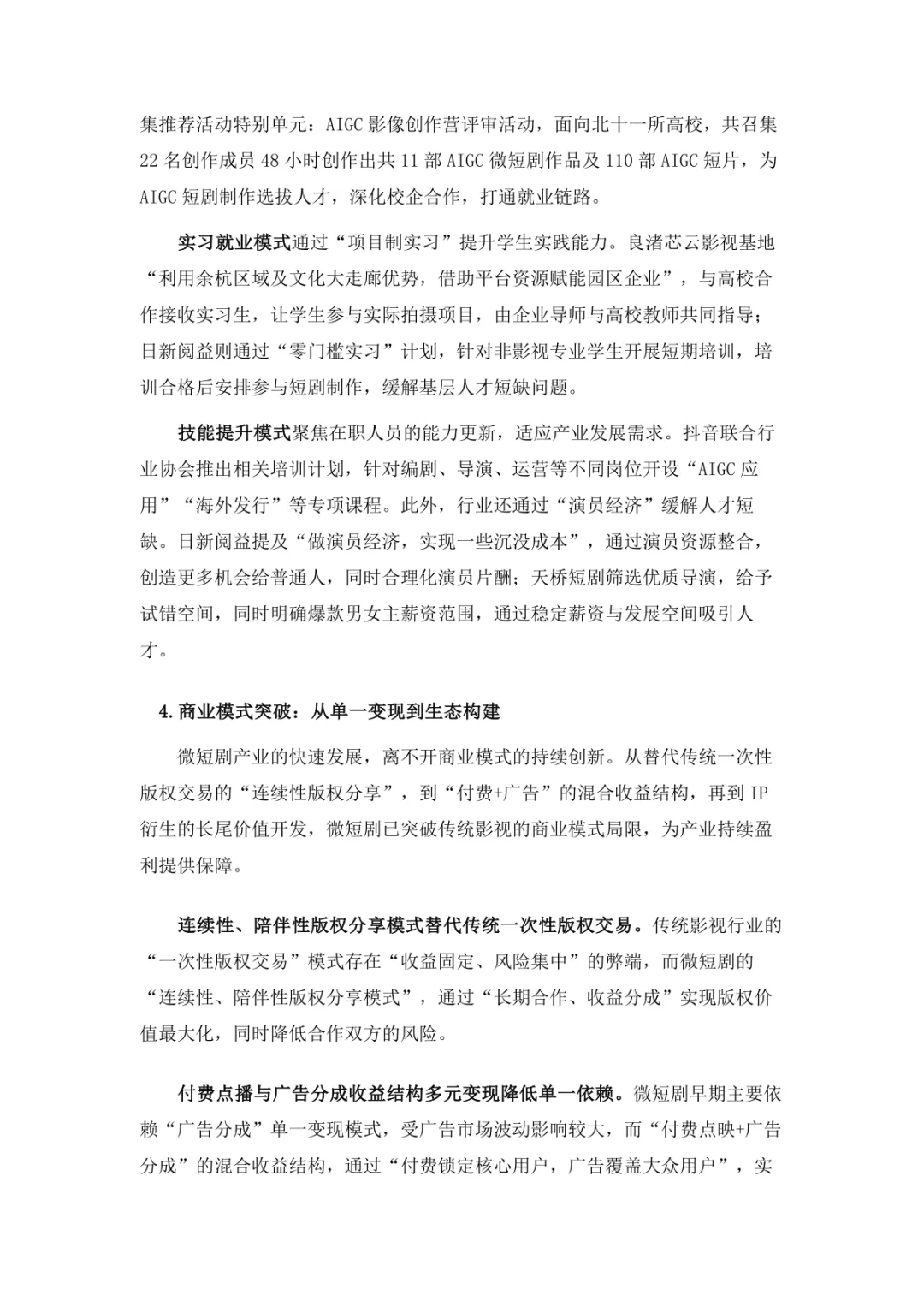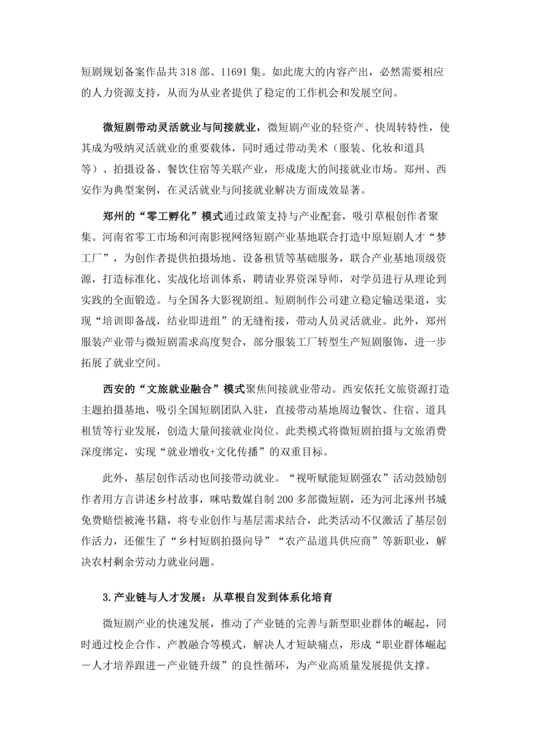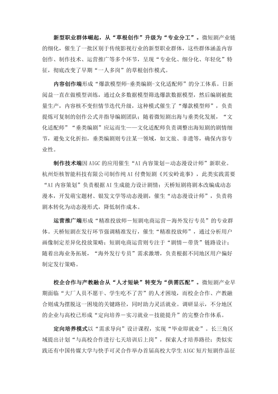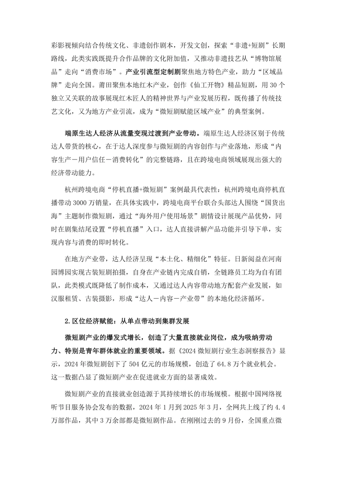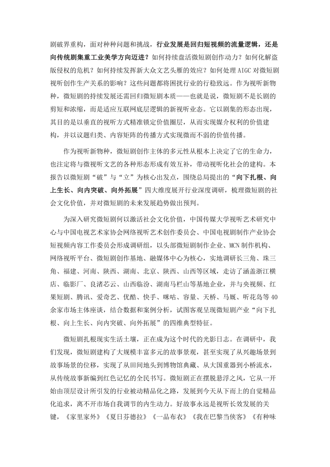 导读:微短剧作为 “新大众文艺” 典型代表,深度融合普法、传统文化、乡村振兴等社会文化领域,实现从 “情绪刺激” 到 “情感共鸣”、“流量导向” 到 “价值沉淀” 的跨越。政策层面持续发力,广电总局出台多项政策引导行业规范发展,为产业繁荣奠定基础。用户群体广泛,Z 世代为重要参与力量,抖音、微信视频号等平台成为主要传播阵地。创作呈现 “小而美、短而精” 趋势,精品内容不断涌现,既深耕移动场景传递情感价值,也通过优质叙事承载情怀内涵。产业融合持续深化,形成 “一剧带一景” 传播矩阵,联动文旅、品牌营销等多领域开辟价值蓝海。同时面临盗版侵权、AIGC 影响等行业挑战,需通过强化内容精品化、完善版权保护、优化创作生态,推动行业行稳致远,持续发挥新大众文艺的引领效应。