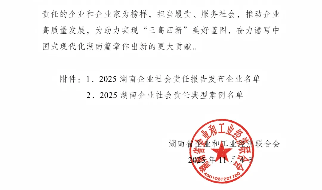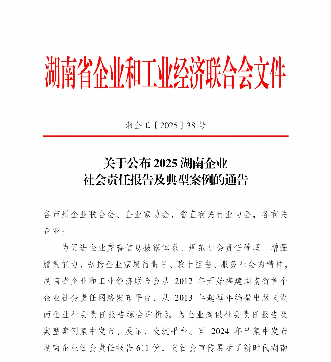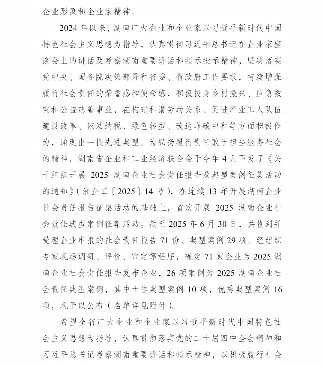 关于公布2025湖南企业社会责任报告及典型案例的通告