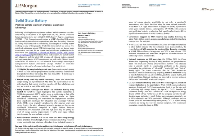 1. JPMorgan-Solid State Battery Pilot line sample testing in progress; Pilot line sample testing in progress; Expert call take aways (24页)