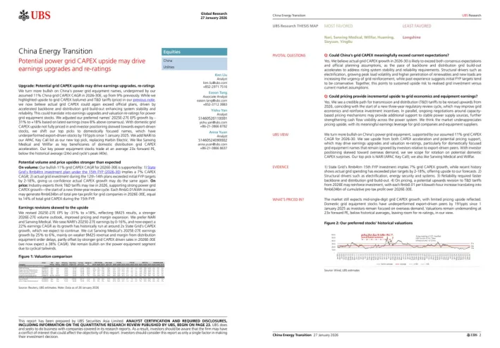2. UBS-China Energy Transition:Potential power grid CAPEX upside may drive earnings upgrades and re-ratings