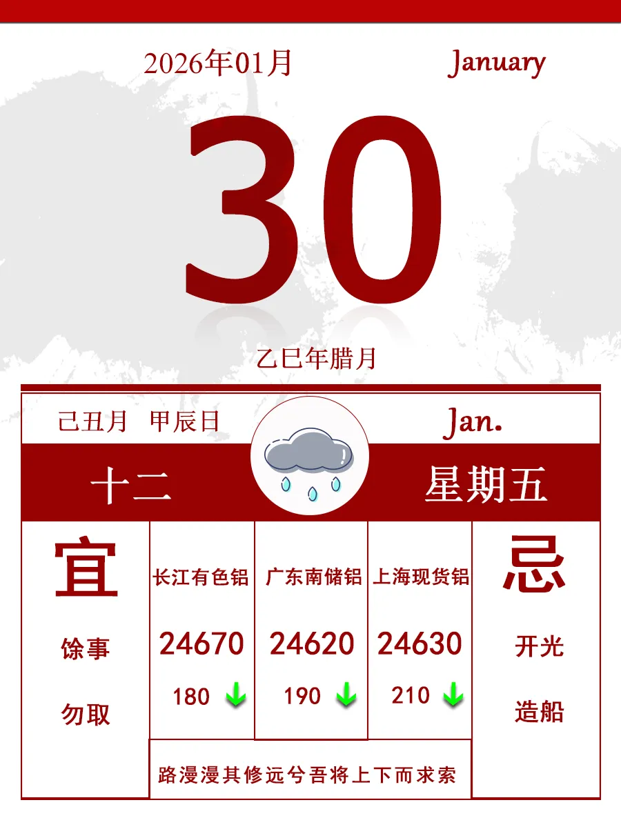 关注每日铝土矿、氧化铝、电解铝(铝锭)价格用户请到找铝抖音号查看当天价格,谢谢!