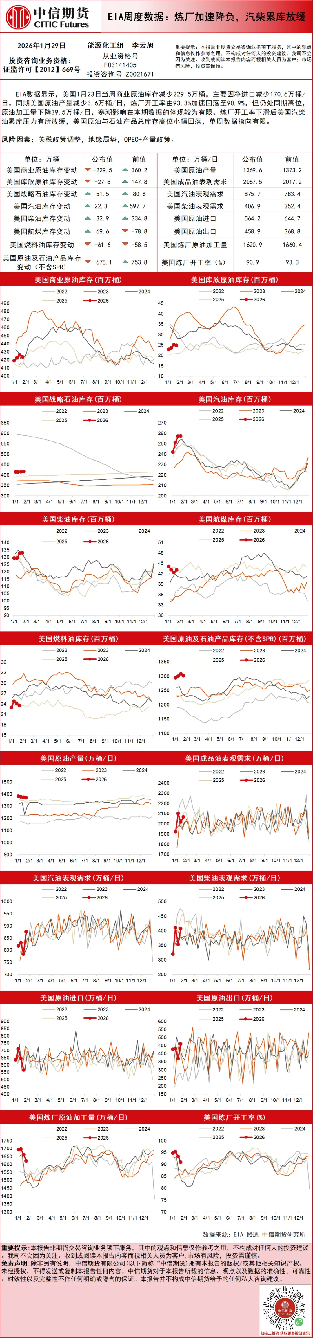 EIA周度数据:炼厂加速降负,汽柴累库放缓