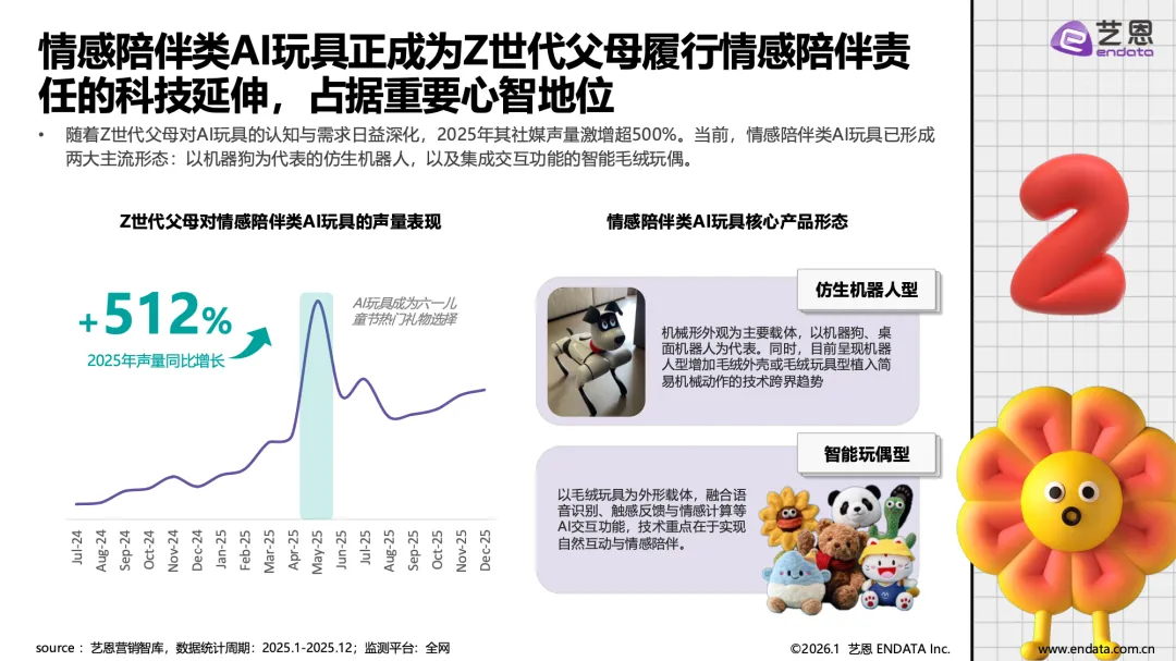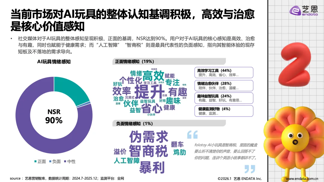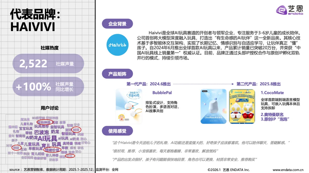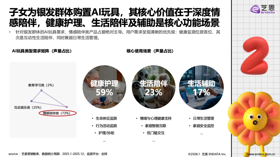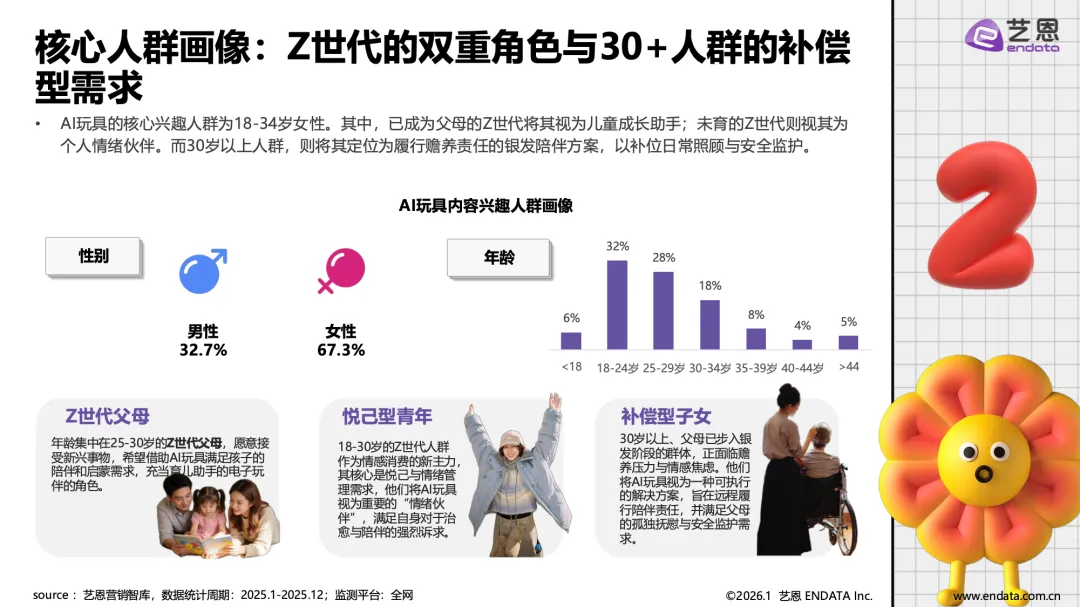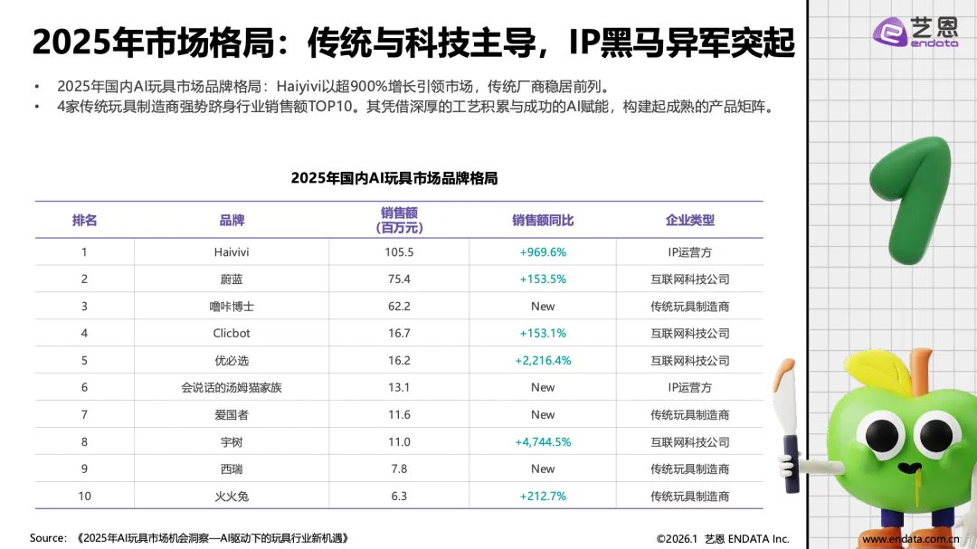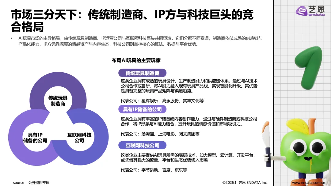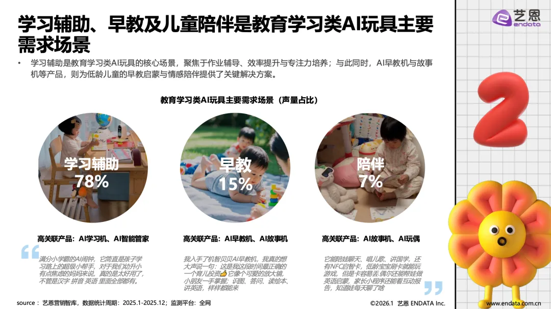 AI玩具产业已从技术概念落地为具有明确场景价值的消费品类,正从概念走向普及,成为覆盖儿童教育、青年陪伴与银发关怀的全年龄层情感与功能载体。市场在经历企业数量波动后进入理性发展阶段,具备核心技术、精准场景与品牌优势的企业逐步引领市场。