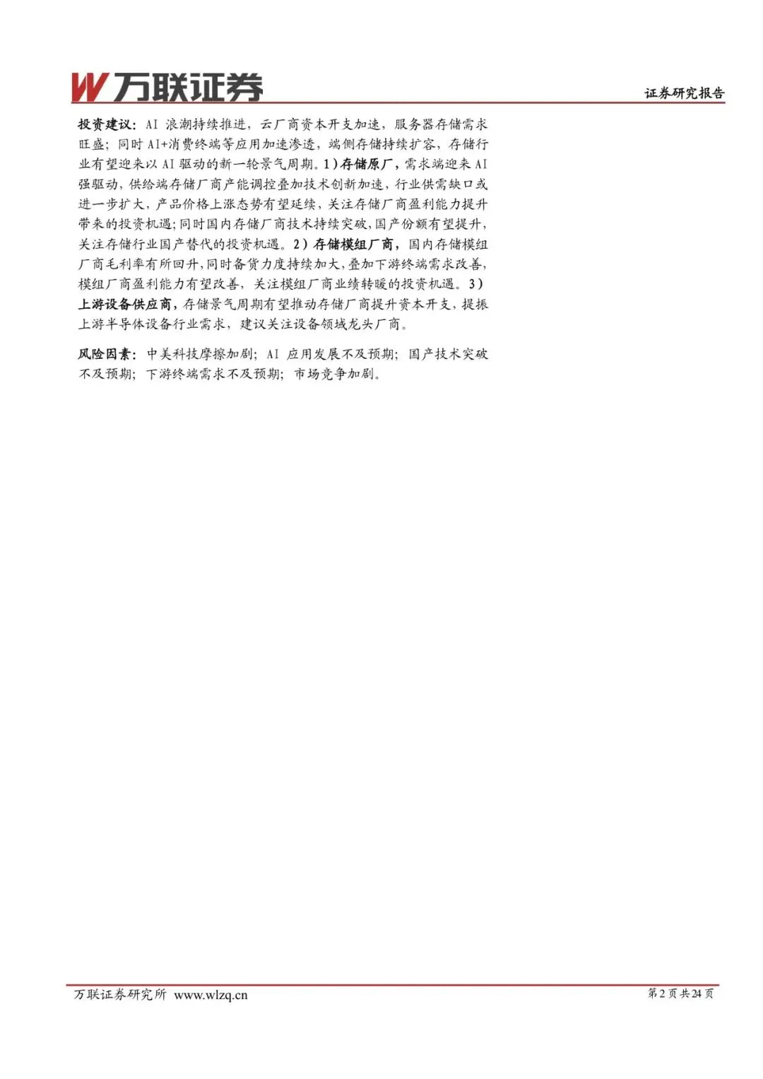 中美科技摩擦升级;AI应用落地低于预期;国产技术迭代不及预期;消费电子需求疲软;行业竞争加剧导致价格涨幅低于预期。