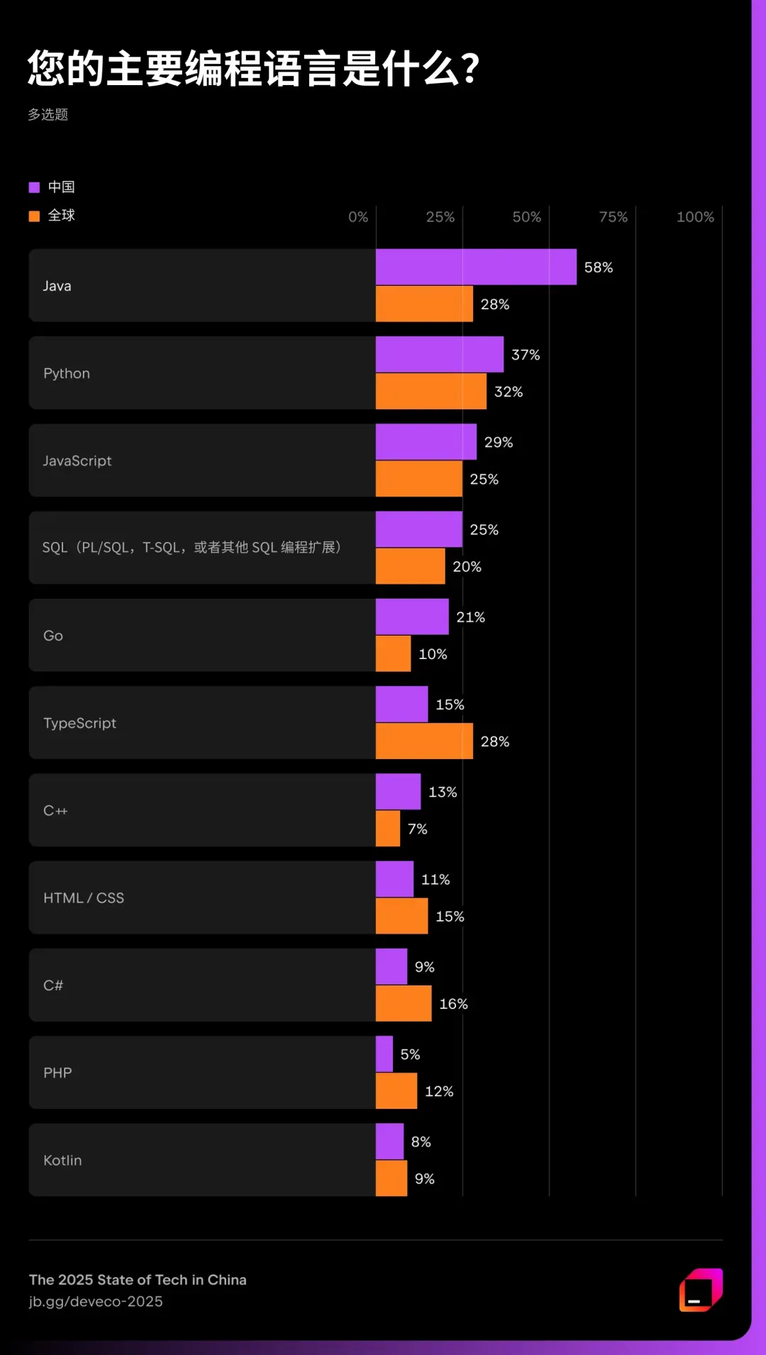 导读:本文基于 JetBrains 2025 年开发者生态系统调研,聚焦中国市场的独家洞察,对比全球趋势呈现中国开发者生态的独特性。