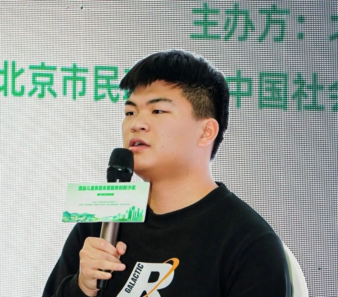 曾经的流动儿童、现为大一学生的苏峰分享了自己的成长经历:一年级随父母来到城市,因父母忙于工作,早早学会独自上下学、做饭,返乡升学时面临饮食、方言、人际排挤等多重挑战。他呼吁加快流动儿童在教育、医疗等相关政策的落地,缓解流动儿童返乡升学的适应难题,同时希望社会更多支持服务流动儿童家庭的社会组织。苏峰曾是协作者困境儿童自助图书馆的小馆长,在社会工作者的鼓励下从胆小内向变得自信开朗,如今立志成为“助人者”,“因为自己淋过雨,所以想给别人打把伞”。