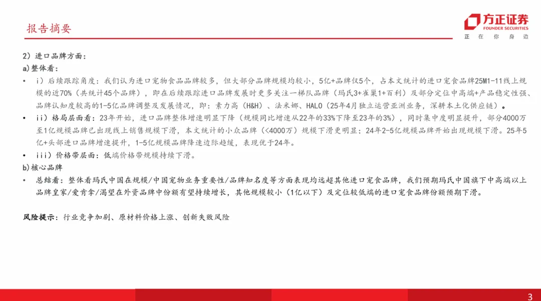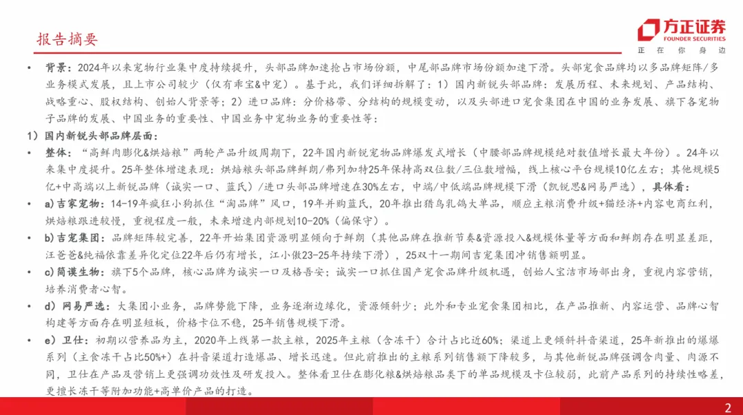 头部宠食品牌均以多品牌矩阵/多业务模式发展,且上市公司较少(仅有乖宝&中宠)。