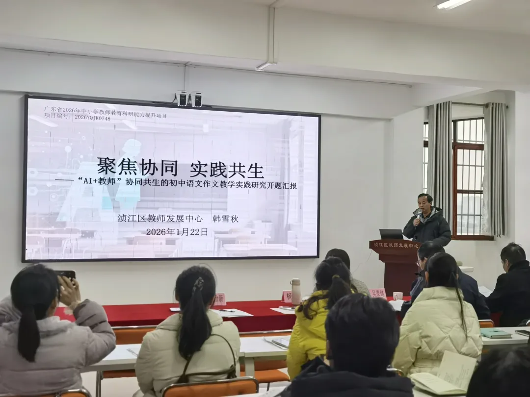 韶关市浈江区教师发展中心韩雪秋副主任的课题直击学生写作畏难、教师批改压力大的教学痛点,立足AI与作文教学研究空白,确立“从工具辅助走向协同共生”的研究定位。课题核心构建“双核驱动、三阶联动、四课融通” 的创新框架。以AI数智赋能、教师人文引领为双核,覆盖写前-写中-写后三阶人机接力,设计智能辅助、对话互动等四种实践课型。同时明确“培训+实践+反思”研究路径,已完成学情调研、课例探索与团队组建,预期形成可推广的教学模式,破解作文教学难题,提升师生教与学能力。