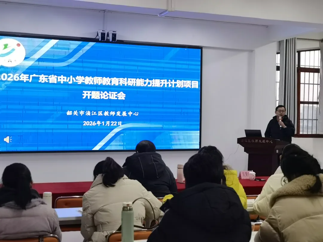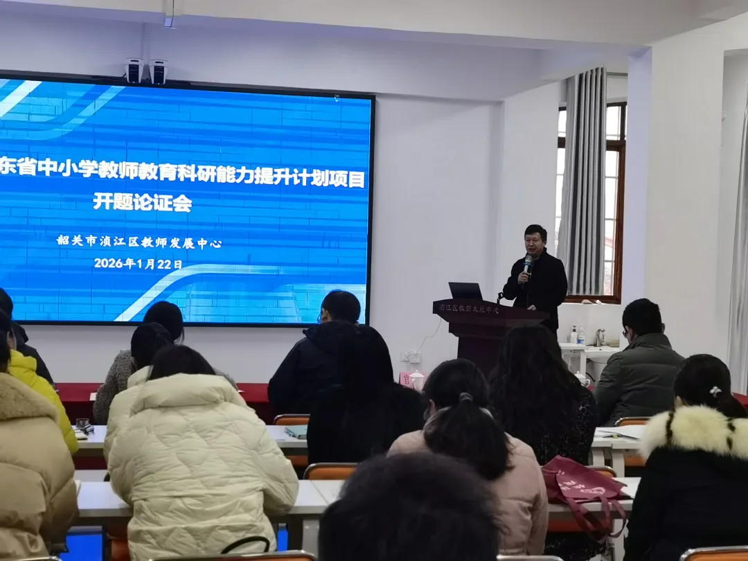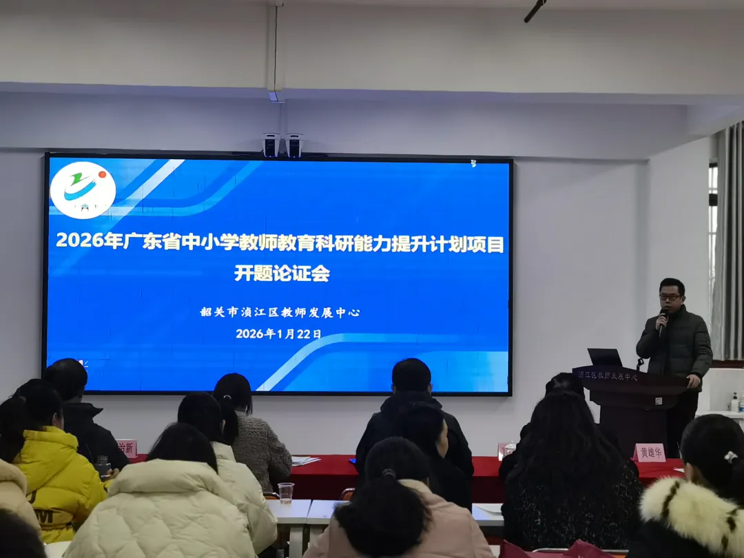 2026年1月22日,由韶关市浈江区教师发展中心组织的广东省2026年度小学教师教育科研能力提升计划项目开题报告会,在韶关市浈江区教师发展中心五楼研训室顺利召开。本次会议邀请韶关市教育科学研究院副院长吴秉健、韶关学院数学与统计学院教授官运和、韶关学院教育科学学院副教授杨翠、韶关市教育科学研究院初中语文教研员夏治新以及韶关市浈江区教师发展中心主任黄雄华组成专家评审组,对四项课题(两项重点、两项一般)进行论证指导。会议旨在汇报研讨课题研究实施方案,明确研究目标及分工,汇聚专家智慧,明晰研究方向,为课题的顺利开展奠定坚实基础。