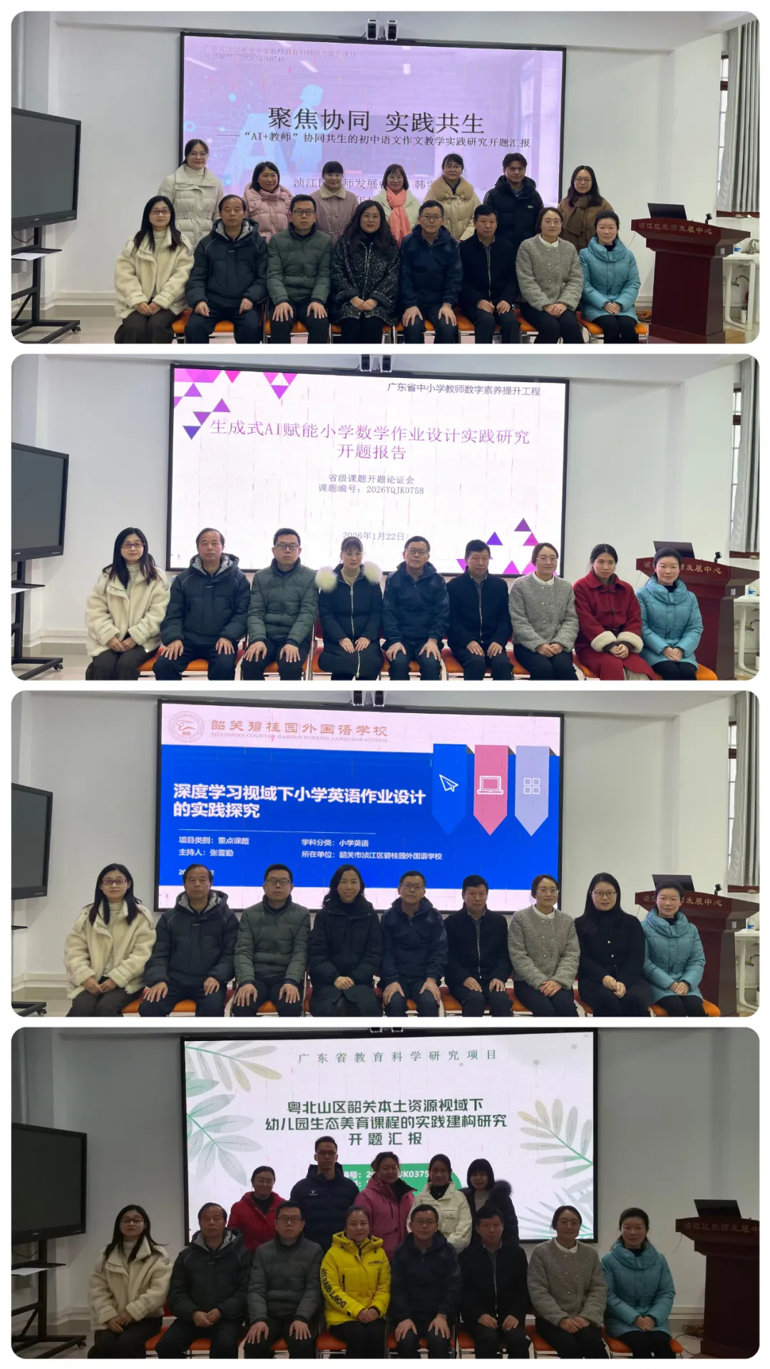 研无止境,行则将至。本次开题的四项课题,是广东省基础教育教研体系建设县(市、区)教研项目(韶关浈江)、广东省基础教育课程教学改革深化行动实验区(韶关浈江)建设的深化与延伸。课题研究以实践探索为核心,旨在凝练形成可复制、可推广的教学模式,开发本土化优质教育资源,为“韶优课堂”建设与课程教学改革向纵深推进注入新活力,为区域教育高质量发展持续赋能、添砖加瓦!