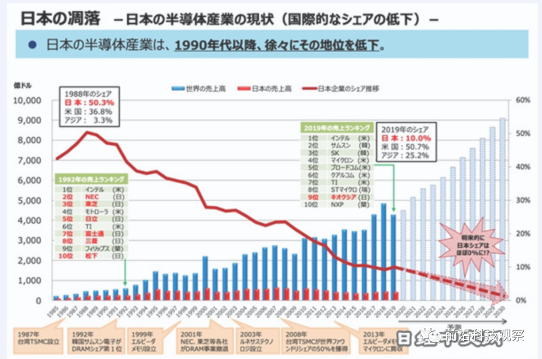 日本汽车行业作为日本的“看家本领”,却未能意识到半导体对其命运的决定性影响。与汽车行业的商业习惯不同,半导体行业更加垂直整合,更加注重订单准时生产。半导体行业在微缩化方面取得了巨大进步,TSMC、三星等公司的尖端技术越发领先。然而,日本企业对半导体的认知和技术创新方向相对滞后。目前,拥有半导体尖端技术的公司主要集中在台湾、韩国和美国。半导体制程越先进,性能越好,占据制高点的地位就越有利。