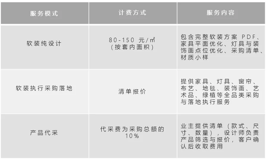 提供软装清单明细;确定详细的软装尺寸、材质、颜色;