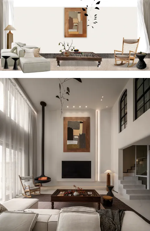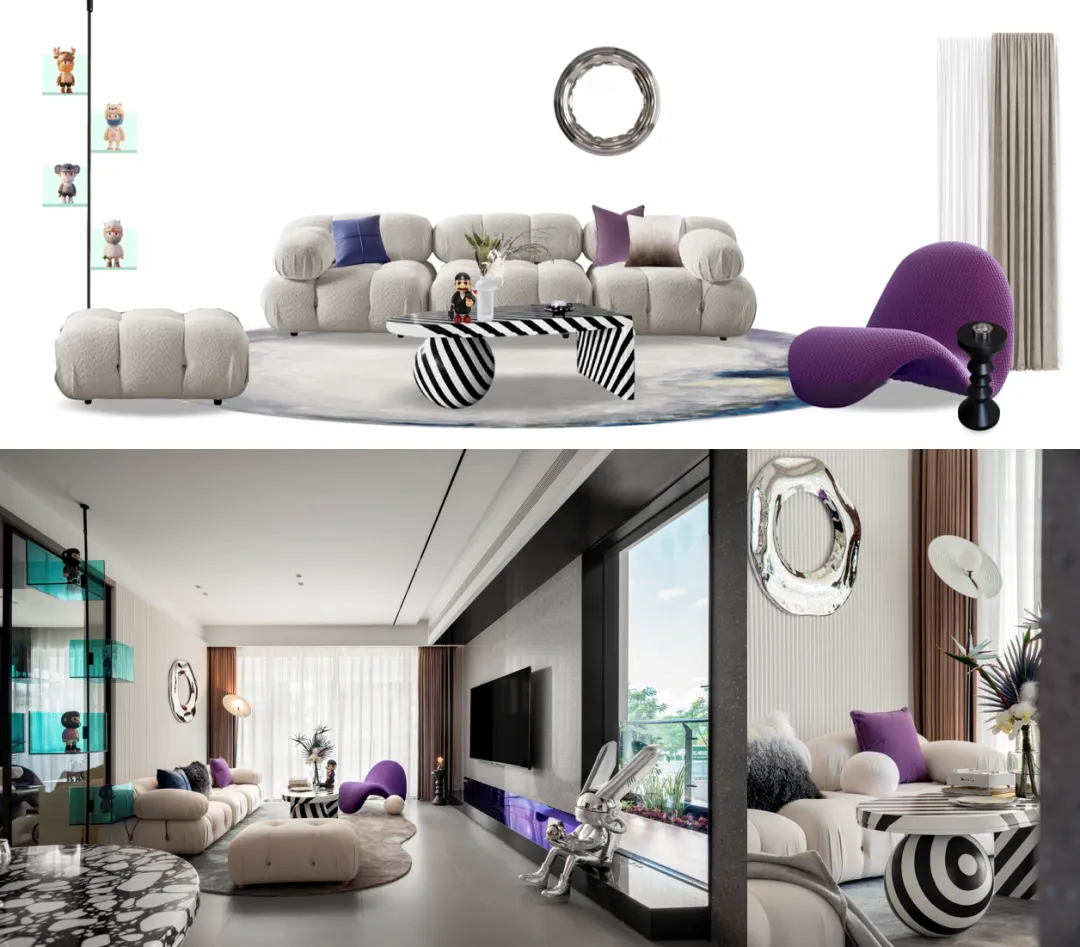 设计方案将具体至家具、灯饰、装饰画、窗帘、地毯、工艺品、布艺、花艺等全部品类,提供明确的单品选型建议及空间点位规划,并进行逐一讲解确认。