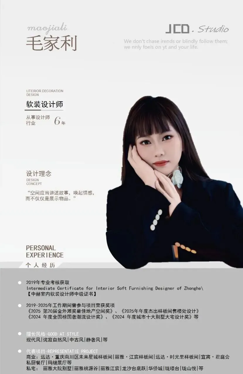 理念:我们是专注于个性化软装定制的一站式解决方案提供者。团队拥有超过10年行业经验,依托全球1000+精选供应商与高定工厂资源,构建了集创意设计、高效采购与专业交付于一体的完整服务体系。我们以深度供应链管理与严谨的执行把控为核心,从方案设计到最终落地全程可控,确保每个项目实现创意与品质的完美平衡。
