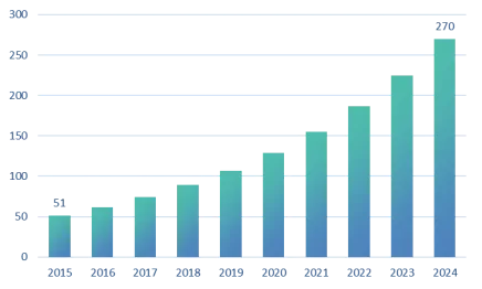 重组蛋白在生物技术、医学和研究中具有多种应用,在制药行业生产治疗性蛋白质、疫苗和酶方面起到至关重要的作用,在科学研究中常被用作研究基因功能、蛋白质结构和各种细胞过程的关键工具,成为推动市场发展的关键因素。数据显示,全球重组蛋白行业市场规模从2015年的70亿美元增长至2024年的185亿美元,年复合增长率达到11.4%,预计2025年全球重组蛋白行业市场规模将增长至208亿美元。