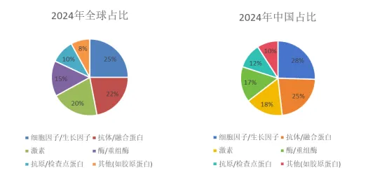 前文提到,重组蛋白按功能与结构可分为细胞因子、激素、抗体、酶、抗原等,其中细胞因子与抗体为主要收入来源,高附加值修饰型蛋白增速最快。细胞因子与抗体合计占全球市场近50%,中国抗体类产品占比更高(25%),反映生物药研发需求旺盛。