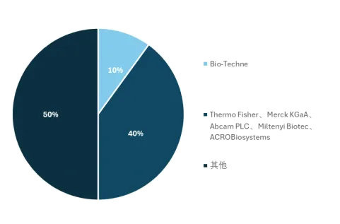 2025年全球重组蛋白市场竞争格局呈现“头部集中、中小分散”特征,关键厂商有Bio-Techne、ThermoFisher、MerckKGaA、AbcamPLC、MiltenyiBiotec、ACROBiosystems,CR6约为50%,其中Bio-Techne以10%居首,Thermo Fisher、Merck KGaA等紧随其后,剩余份额由众多中小企业及新兴品牌瓜分。