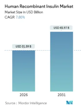 市场规模方面,根据Mordor Intelligence数据显示,2025年全球人类重组胰岛素市场规模为293亿美元,预计2026年市场规模为315.9亿美元,预计到2031年,该市场规模将达到459.7亿美元,2026年至2031年期间的复合年增长率为7.80%。从地理分布来看,2025年北美以41.98%的份额领先;亚太地区是增长最快的区域,到2031年的复合年增长率为8.63%。