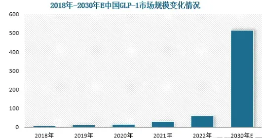 此外,我国庞大的糖尿病和肥胖人群对于安全、有效的降血糖和减肥药物有着迫切的需求,这也为国内GLP-1药物行业发展提供了广阔的消费空间,推动其市场规模不断扩容。数据显示,2022年GLP-1药物市场规模已上升至60.5亿元,同比增长95.79%,呈现出高速增长态势。未来随着GLP-1药物陆续获批,到2030年,其市场规模有望突破500亿元,年复合增长率超过25%。