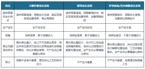 目前,共有三种表达体系用于HPV疫苗抗原的表达,包括大肠杆菌表达系统、酵母表达系统和杆状病毒/昆虫细胞表达系统。