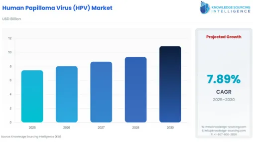 据Knowledge Sourcing Insights数据显示全球HPV市场预计将从2025年的74.64亿美元增长到2030年的109.09亿美元,复合年增长率为7.89%。