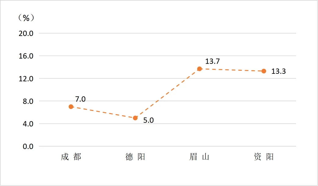 2025年,成都都市圈规模以上工业增加值同比增长7.4%,增速高于全省0.9个百分点。其中,成都市、德阳市、眉山市、资阳市分别增长7.0%、5.0%、13.7%、13.3%。