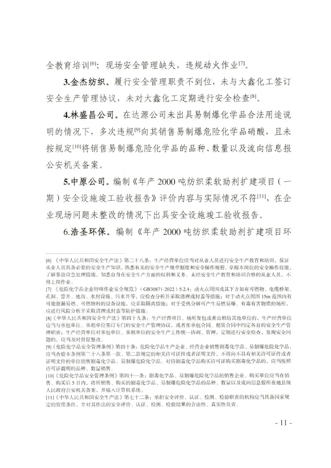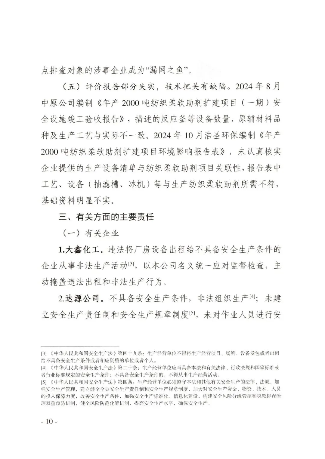 2024年8月中原公司编制《年产2000吨纺织柔软助剂扩建项目(一期)安全设施竣工验收报告》,描述的反应釜等设备数量、原辅材料品种及生产工艺与实际不一致。2024年10月浩圣环保编制《年产2000吨纺织柔软助剂扩建项目环境影响报告表》,未认真核实企业提供的生产设备清单与纺织柔软助剂项目关联性,报告表中工艺、设备(抽滤槽、冰机)等与生产纺织柔软助剂所需不符,基础资料明显不实。