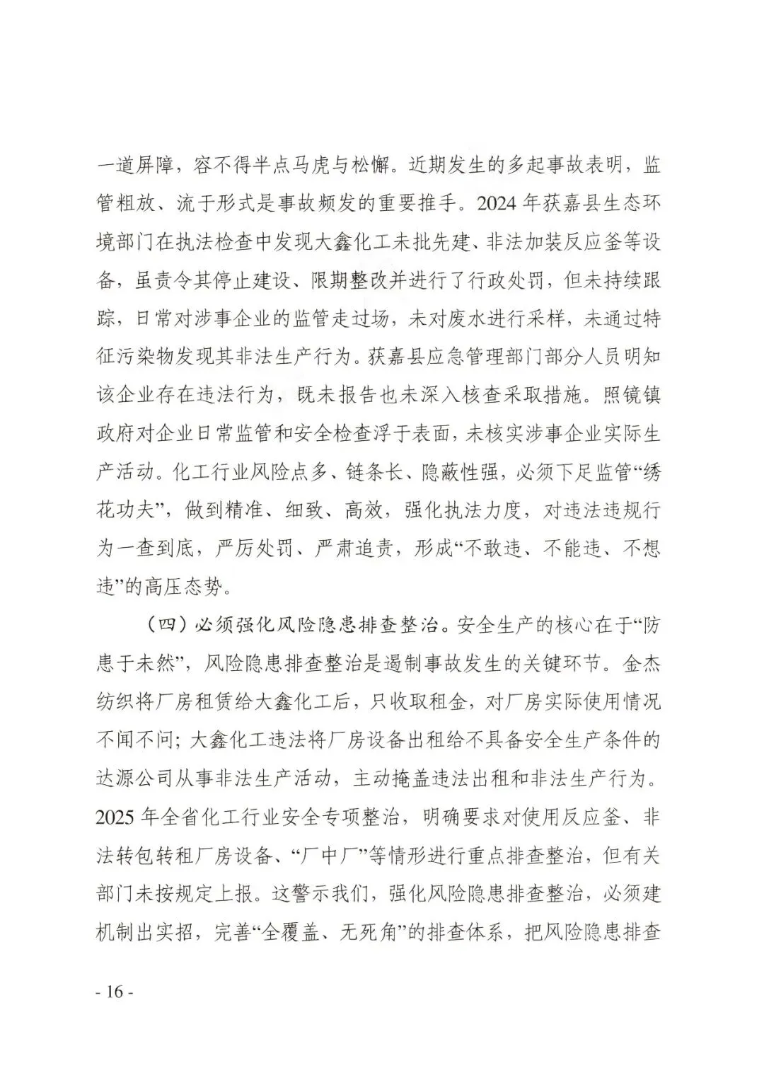 获嘉县应急管理部门在组织落实2025年全省化工行业安全专项排查整治工作中,主动排查意识缺失,主要依靠乡镇上报企业名单,导致本应作为重点排查对象的涉事企业成为“漏网之鱼”。