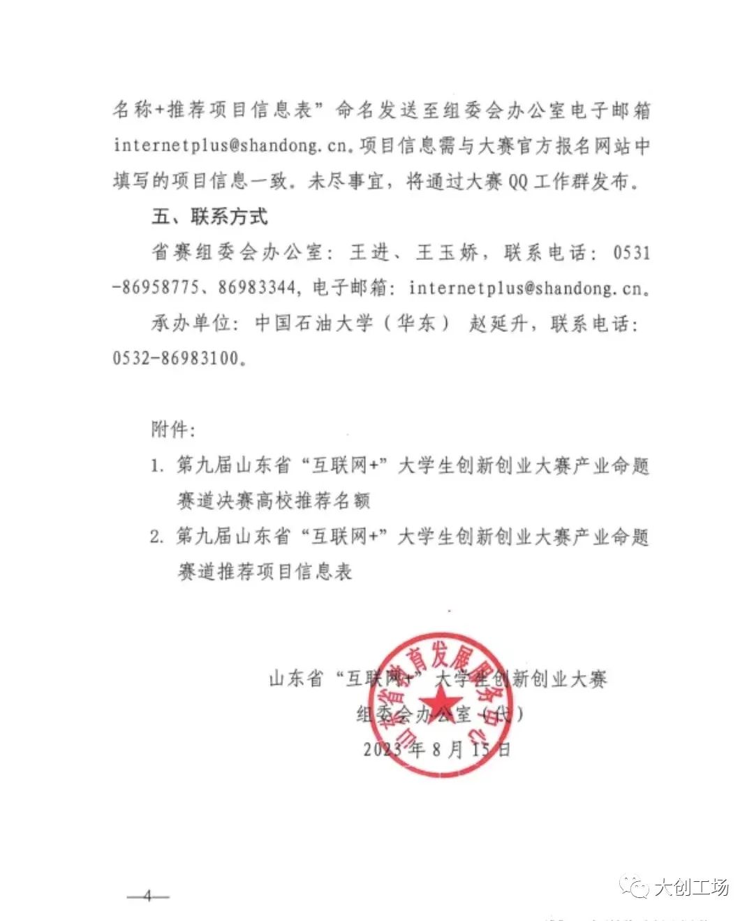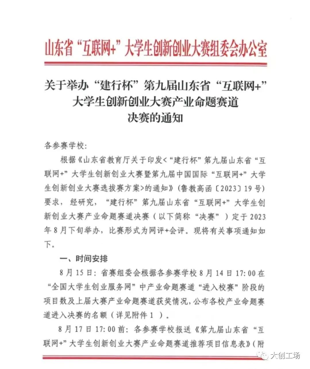 【山东】第九届互联网+大赛产业赛道决赛通知(附名额分配)
