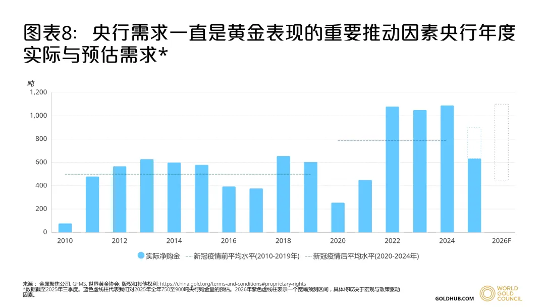 尽管全年需求未能突破此前2022-2024连续三年超年均1,000吨的水平,但央行购金仍是2025年全球黄金需求的重要推动力,为整体需求提供了增量。