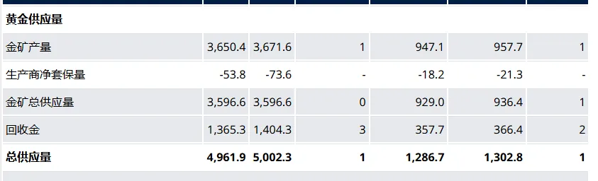 全年黄金供应总量同比增长1%,达5002吨,同样创下新高。