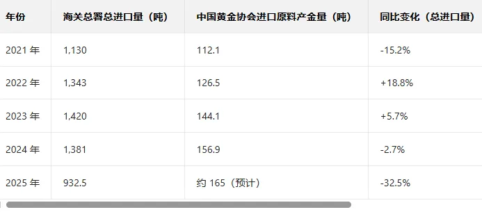 即使有不少比例的进口原料产金,仍满足不了我国对黄金的需求。