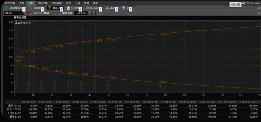。这代表市场认为有近一半的机会,股价会向上跳空,但最高通常不会超过 107.38。