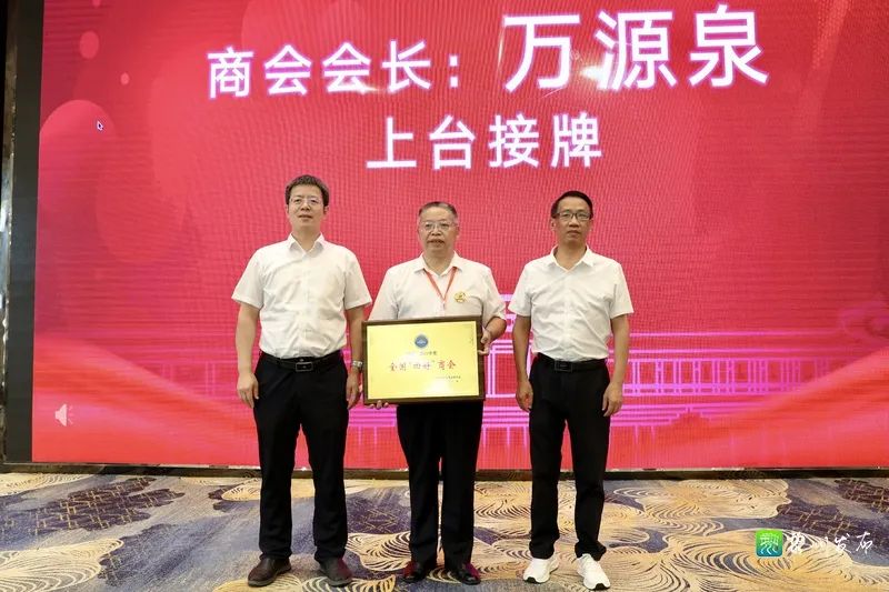 会上,郑锦锋,邱江峰共同为日峰商会授全国“四好”商会牌匾,万国辉为日峰商会授市模范党支部牌匾,赵似珍为新增补日峰商会副会长、理事授牌。
