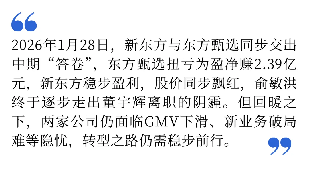 2026年1月28日晚,新东方集团与东方甄选同步披露2026财年中期业绩报告(对应自然年2025年6月1日至11月30日)。