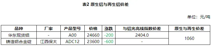 再生铝合金锭生产成本由原料费用+设备折旧费用+人工费+燃气费+铝灰处理费+炉耗等综合测算;废铝原料按破碎生铝(出水95%)进行计算;最新国内再生铝合金平均加工炉耗设定为1.5%(原值2%);近日因地区税返政策波动,成本端税率有所调整。