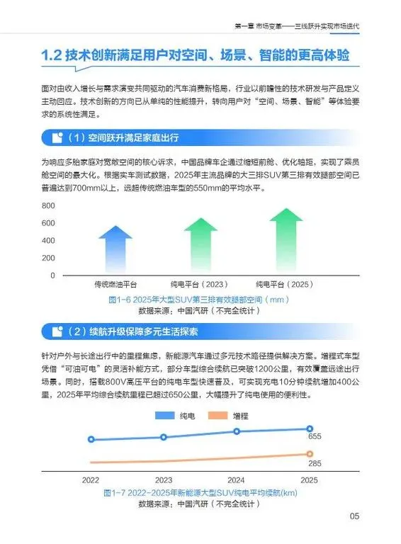 消费升级驱动需求重构、多胎家庭扩容与户外生活兴起催生对大空间、全场景车型的刚性需求;技术创新持续破局、续航提升与补能基建完善破解纯电焦虑,辅助驾驶重塑出行体验;用户认知从"品牌崇拜"转向"价值务实",推动市场向"体验优先、无短板均衡"演进。在此背景下,问界M8等标杆产品以技术突破与精准定位重塑市场格局,印证了自主高端化的成功路径。