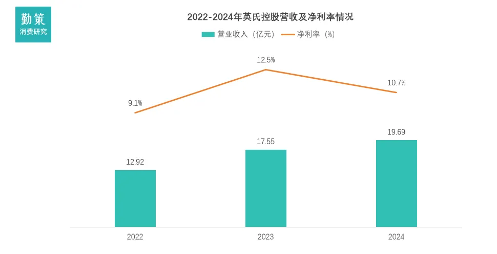 近三年来,英氏控股的营业收入保持增长但增速明显放缓,净利润在2023年冲高后,于2024年出现回落,呈现出“增收不增利”的态势。具体来看,营业收入从2022年的12.92亿元增长至2024年的19.69亿元,然而同比增速从2023年的37.4%大幅下降至2024年的12.3%。同期,净利润分别为1.2亿元、2.2亿元和2.1亿元,2024年同比下滑4.4%,导致净利率从2023年的12.48%回落至2024年的10.64%。这种收入与利润走势背离的主要原因在于高企的销售费用严重侵蚀了利润空间,同时公司核心的婴幼儿辅食业务增长动力不足。2024年,公司的销售费用高达7.21亿元,占营业收入的比例超过35%,其中线上平台推广费就激增至3亿元,但推广效率却在下降。此外,公司2024年超过一半的产品依赖代工模式,引发了食品安全方面的担忧,而其研发投入占营业收入的比例长期低于1%,制了产品创新和长期竞争力的构建。数据来源:企业财报、勤策消费研究