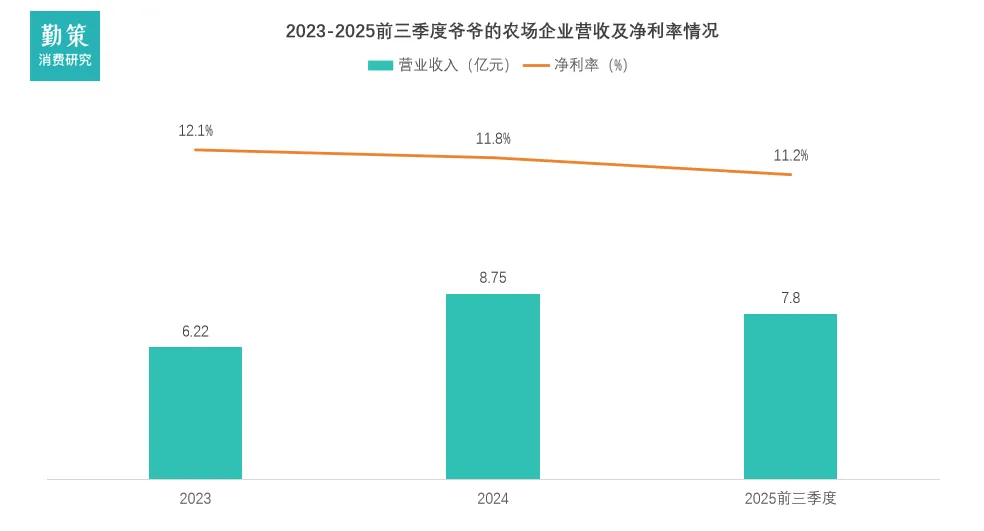 爷爷的农场近年来展现出显著的营收增长,但增速已呈现放缓趋势,同时其盈利能力突出但面临结构性挑战。公司的毛利率持续处于行业高位,2023年至2025年前三季度整体毛利率分别达55.5%、58.8%和57.3%,核心婴童零辅食业务的毛利率接近60%。但高毛利背后是销售及分销开支占总收入比例持续攀升,从2023年的32.3%升至2025年前三季度的36.3%,显著高于研发投入(占比2%-3%),反映出对营销驱动增长的过度依赖。数据来源:企业招股说明书,弗若斯特沙利文,勤策消费研究